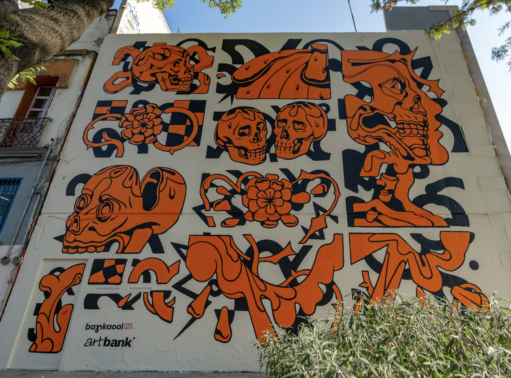 En el centro de su obra aparece una figura constante: una calavera. No como ícono de muerte, sino como personaje principal de su universo emocional. Es su alter ego gráfico, un espejo de cómo se siente, una forma de narrarse desde la piel hacia dentro.