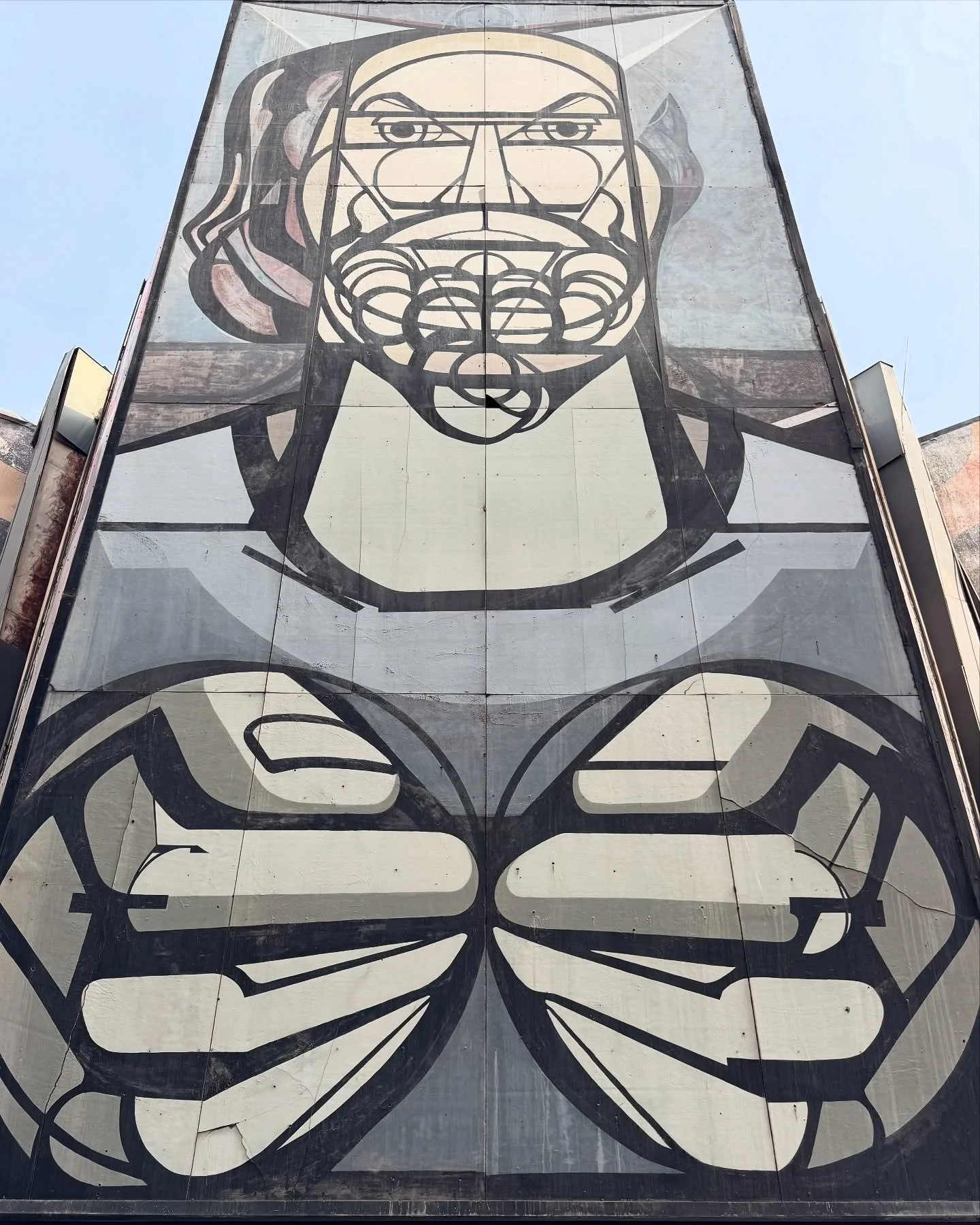 Desde la brocha hasta el aerógrafo industrial, usó cada herramienta que encontró para hacer del mural un espectáculo moderno, dinámico y brutalmente humano.