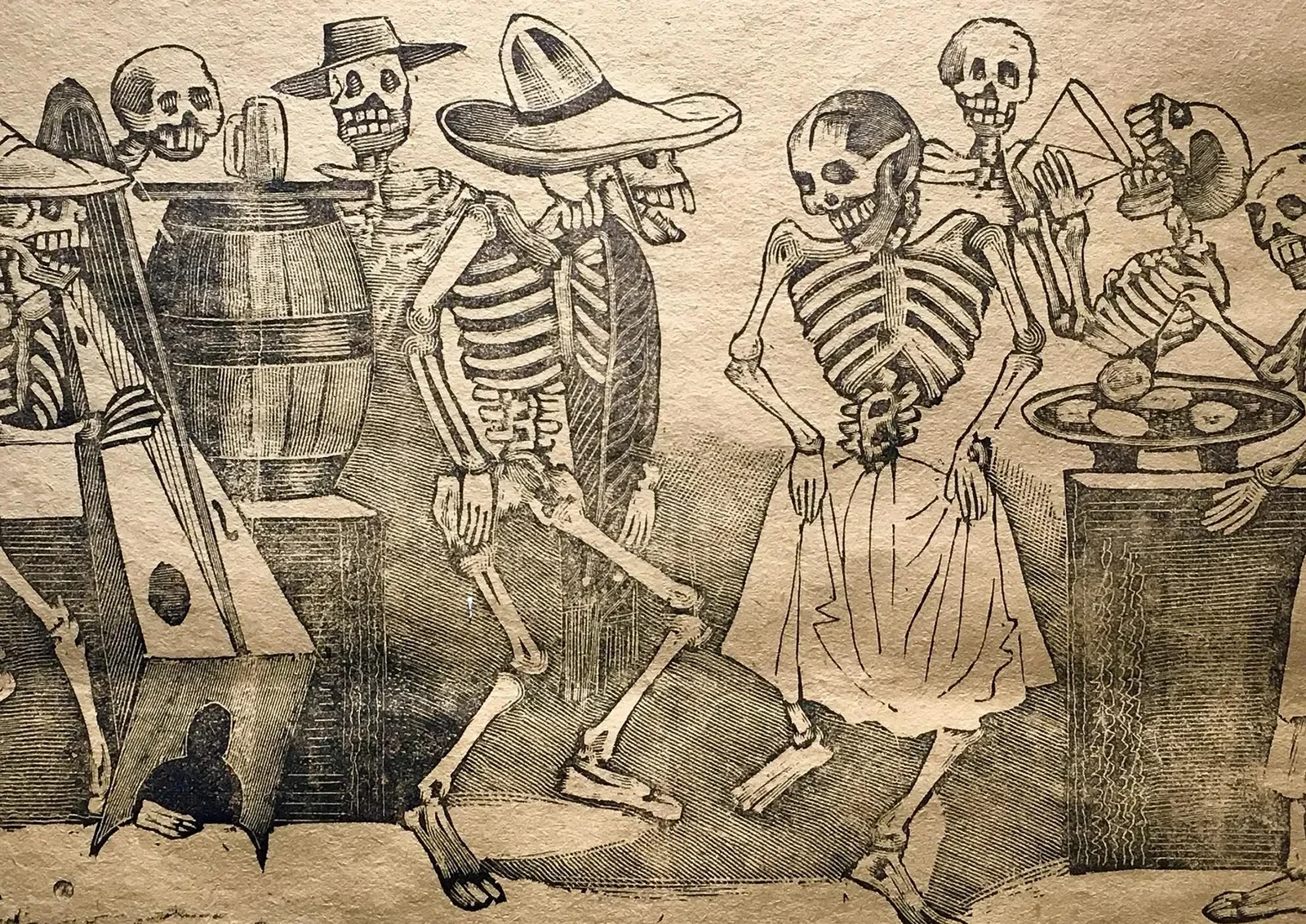 A finales del siglo XIX, el grabador José Guadalupe Posada creó una ilustración que satirizaba a quienes renegaban de sus raíces indígenas para imitar la moda europea. La bautizó “Calavera Garbancera” y la representó como un esqueleto con sombrero afrancesado, desnuda y sin ropa. Su mensaje era directo: de nada servía aparentar riqueza si, al final, todos somos iguales frente a la muerte.