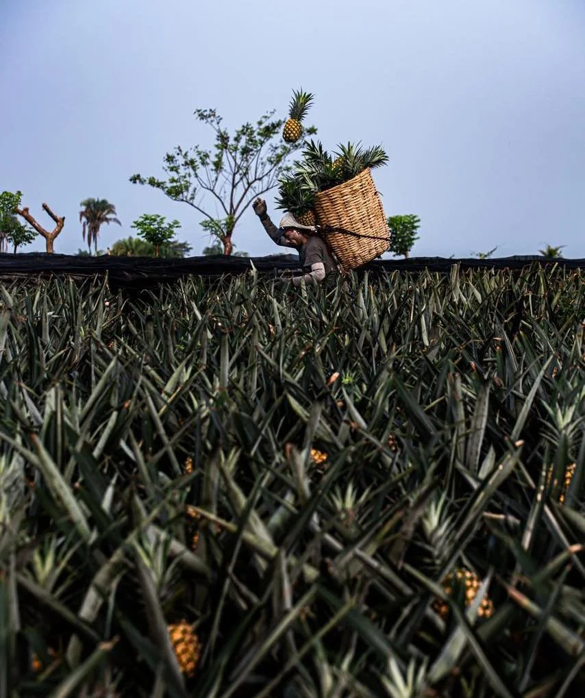 Tomada en Oaxaca, la imagen captura el instante exacto en el que un recolector de piña carga sobre su cuerpo el fruto y, simbólicamente, el trabajo, la tierra y el tiempo. No hay artificio ni pose: hay esfuerzo real, gravedad real, vida real.