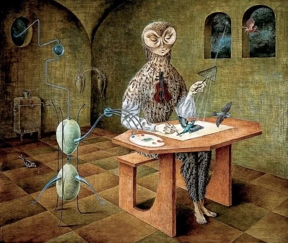 El surrealismo que México hospedó no fue escapismo: fue investigación espiritual en clave visual. Remedios Varo, en Creación de las aves (1957), alquimiza luz, música y pigmento para “fabricar” mundo: intuición y experimento de la mano. Leonora Carrington cruza su mitología con cosmologías mayas sin tratarlas como tema exótico, sino como sistemas vivos, como mostró en El mundo mágico de los mayas (1963). Lo valioso no es “lo raro”, es la escucha: tomarlas en serio, sin reducirlas a estampitas.